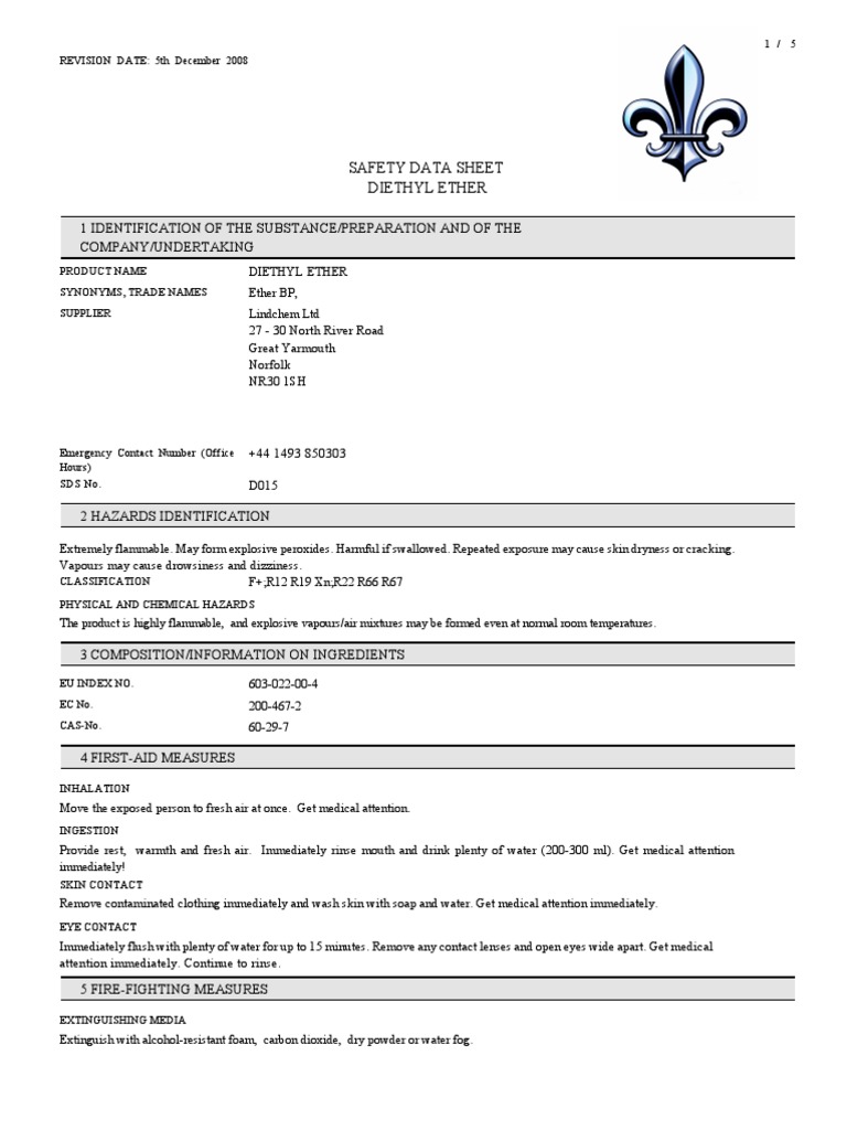 Diethyl Ether Msds Chemistry Materials