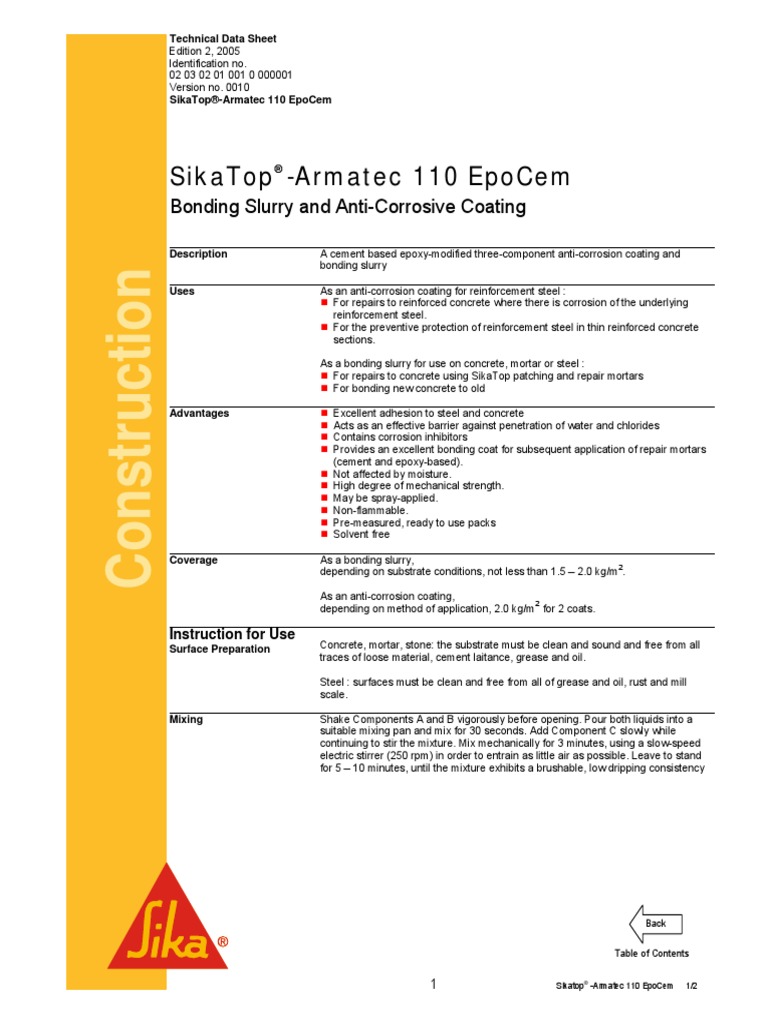 SikaTop Armatec 110 EpoCem PDF PDF Reinforced Concrete Concrete