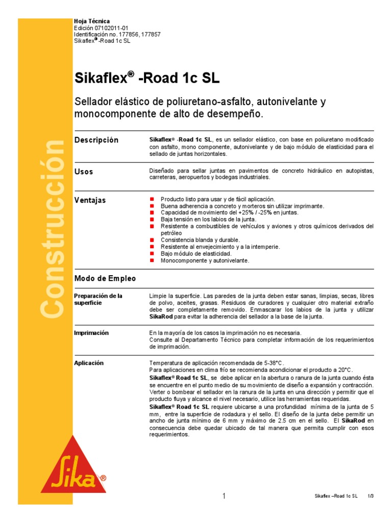 Sellador Elastico Poliuretano Autonivelante Sikaflex 1c SL PDF