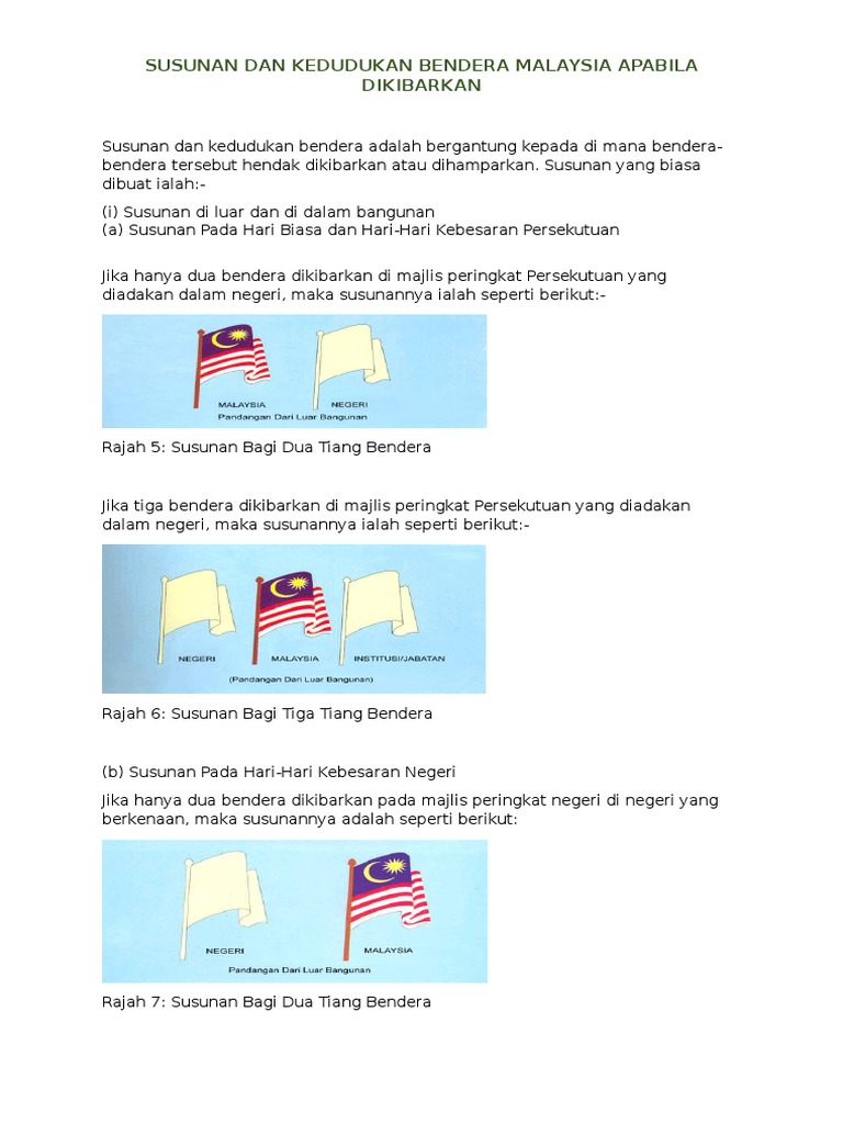 Susunan Bendera Malaysia - Susunan keutamaan bendera ini digunapakai mulai 1 januari 2025. Gambar 3.3 merupakan susunan tiga bendera yang dikibarkan di majlis peringkat persekutuan. Susunan keutamaan bendera ini diguna pakai mulai 1 mei 2021. 14 rows untuk makluman semua penerima darjah kebesaran,.